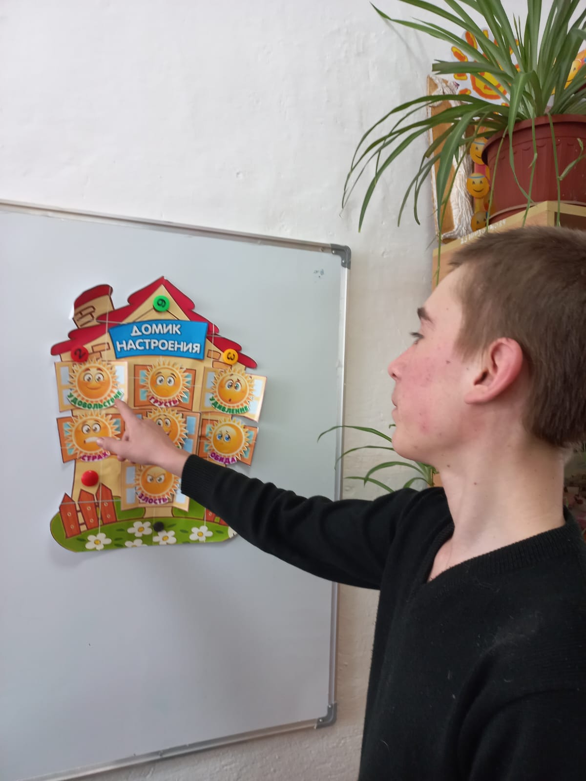 Сабақ барысында қағаз парағындағы балалар өздерінің эмоцияларын бейнелеп, жақын жерде белгілі бір эмоционалды жағдайдан шығудың жолдары мен тәсілдерін жазды.
